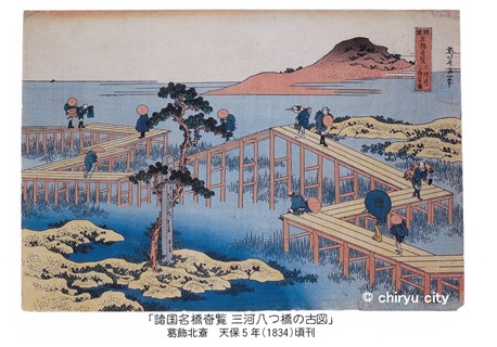 「諸国名橋奇覧 三河八ッ橋の古図」知立市オープンデータ画像(フォト蔵)より